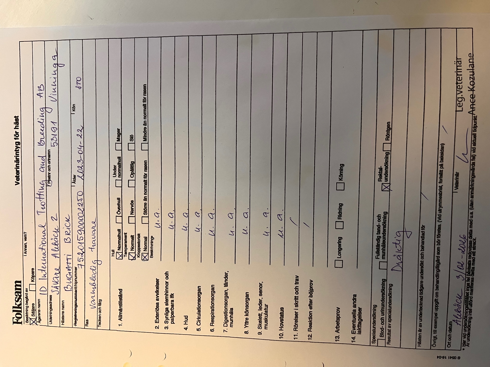 Bugatti Brick är dräktig med Hohneck med ett beräknat földatum 9 mars 2026. Levande föl-avgiften på 6.000 euro betalas av köparen.