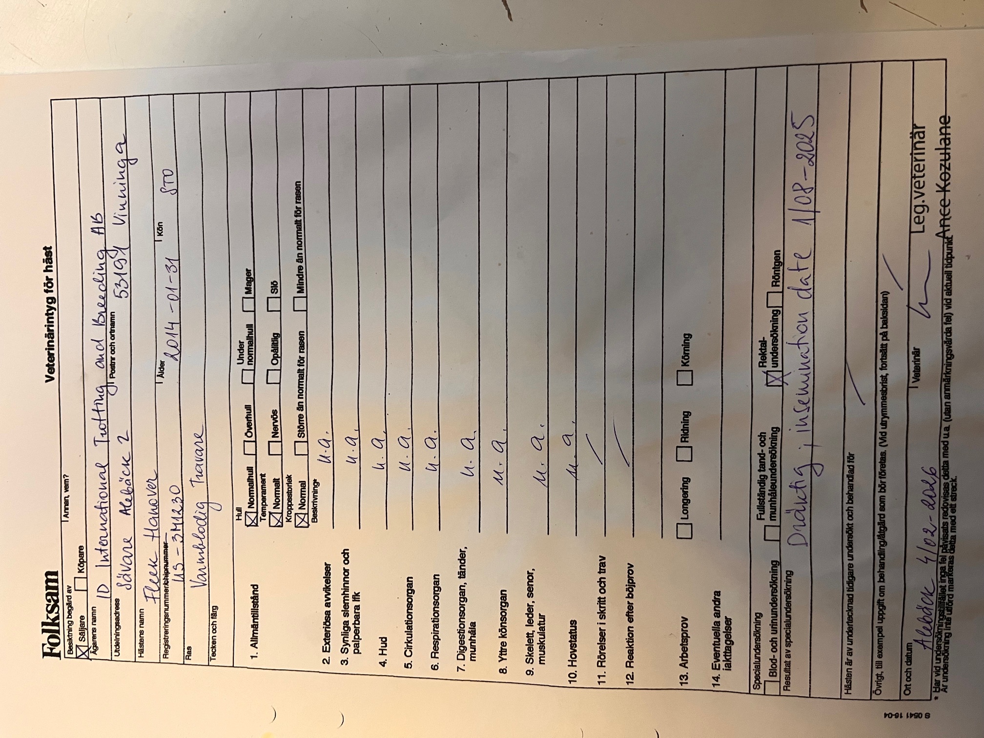 Notera att veterinärintyget är från 4 februari.