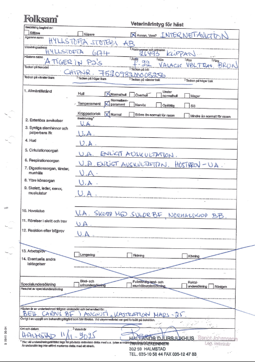 Owners Statement: "A Tiger in Pj's är en stark och rejäl häst, han är stor så han behöver lite mer tid och blir nog en bra häst men han har inte farten i sig just nu. Väldigt stark och bra hjärta men behöver mer tid på sig"