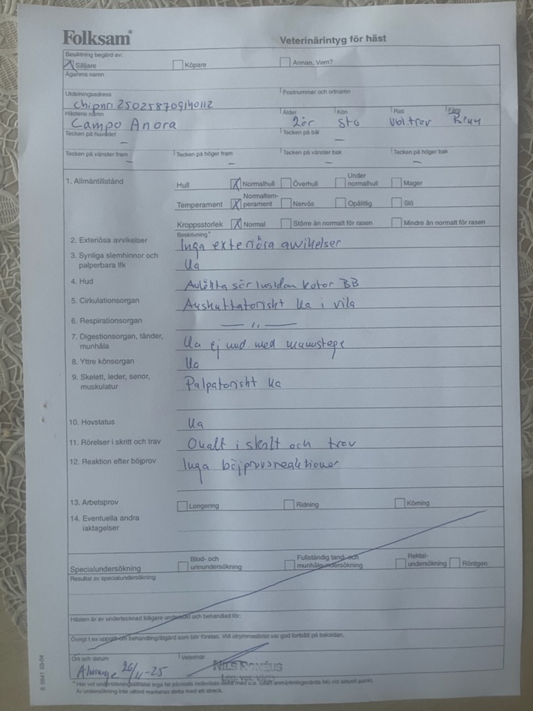 Ett 2-årigt sto efter Campo Bahia, som var ett stort löfte hos Conrad Lugauer – bland annat tvåa i Kriteriet och vinnare av Konung Gustaf V:s Pokal. I aveln har han inlett bra, med årets Derbytrea Bootsman som mest meriterade avkomma. Campo Anora är modern Fondee Anoras andra avkomma.