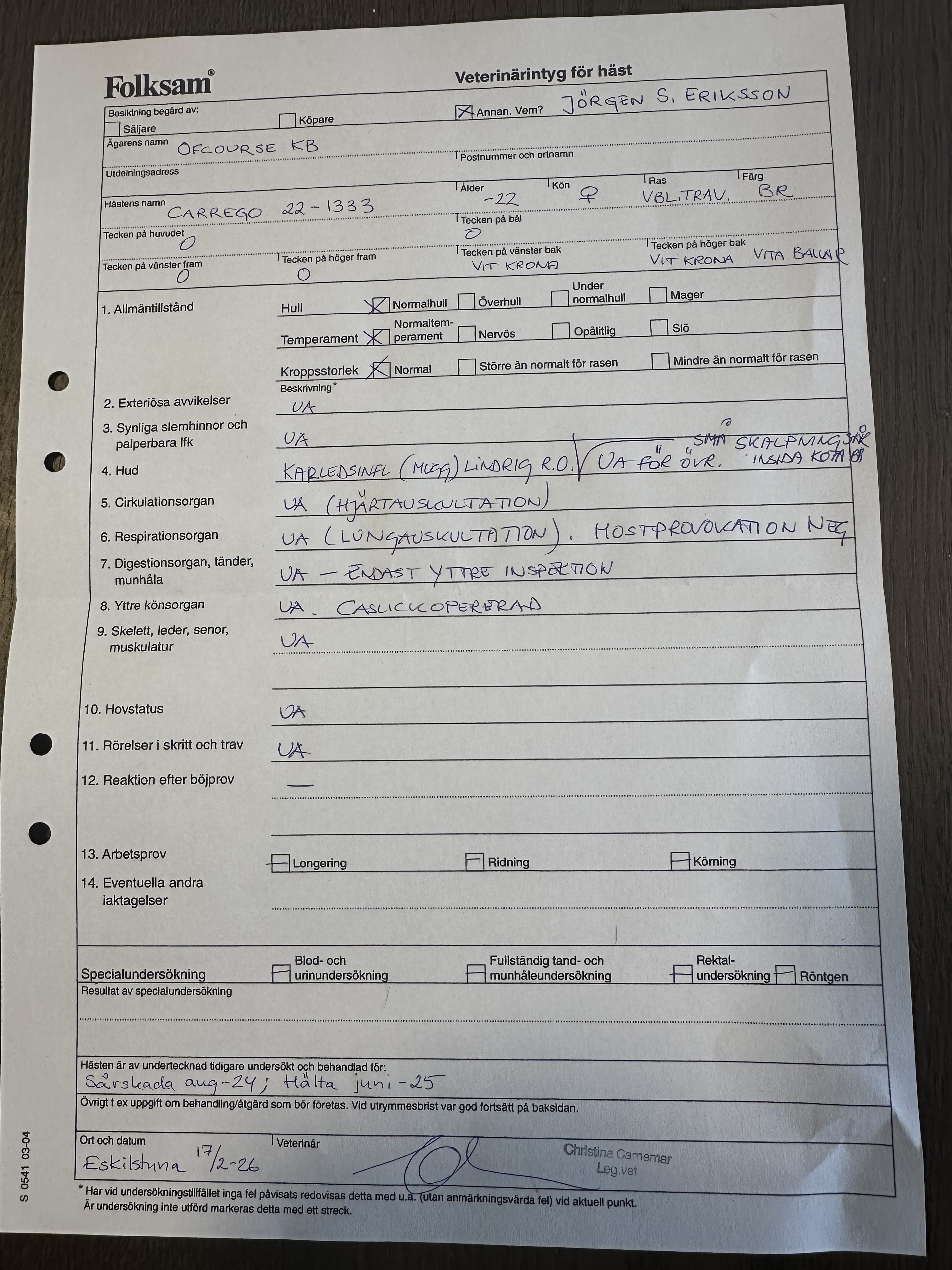 Jörgen S Eriksson: ”Carrego är en häst som jag inte fått ut det hon visat i träning. Hon kommer att bli en bra starthäst med tiden och är snäll i hanteringen.”