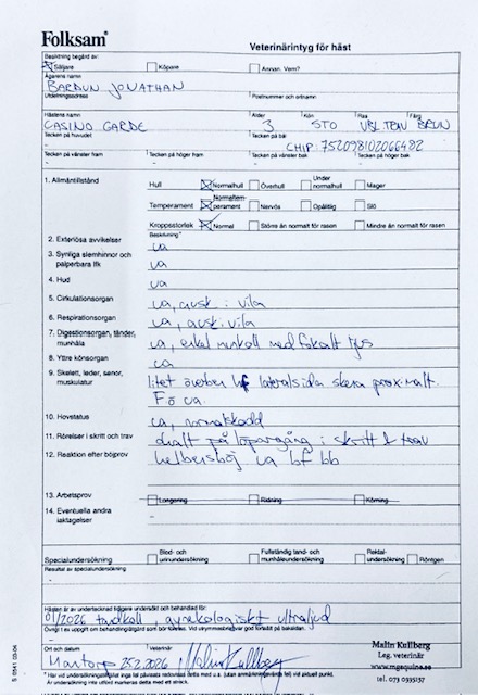 Jonathan Bardun: ”Casino Garde har alltid visat fin kapacitet och bra fart men blir för het och stressad. Att vara uppstallad på travbanan passar henne inte och skulle behöva ett miljöombyte. Hon är snäll i all hantering och mot andra hästar. Rutinerad kusk krävs då hon kan bli het men hon har aldrig varit dum.”