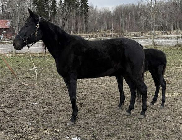Emelie Öhman: "Enga Trot är snäll och okomplicerad i all hantering, körning och ridning. Hon blev även dräktig på första försöket. Hennes första avkomma e. Justice ser mycket fin ut. Finns att se vid intresse. Ej inseminerad i år, kan alltså att starta avelssäsongen tidigt nästa år."
