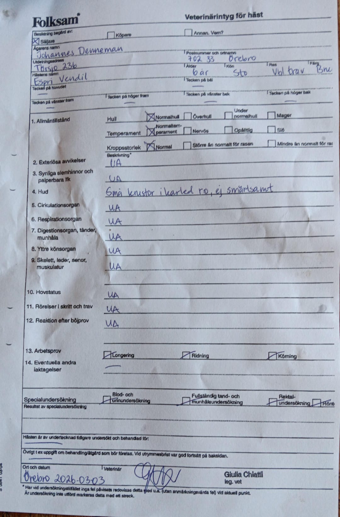 Espri Vendil är skadefri och är i full tävlingskondition.