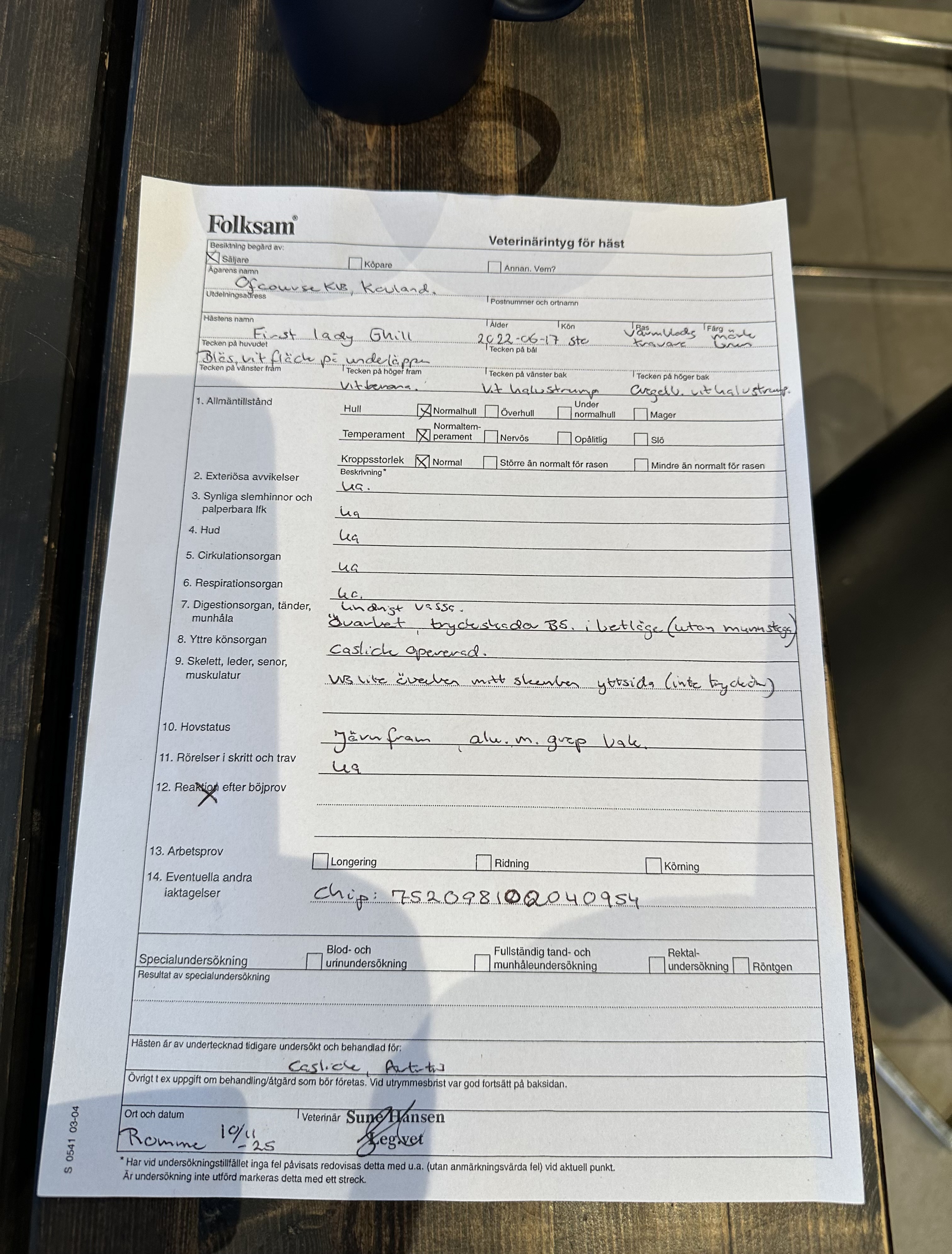 Joakim Elfving: ”First Lady Ghill är en fantastiskt snäll häst, alla klarar av att köra och jobba med henne. Har inte riktigt förstått tävlingsmomentet och behöver mer tid. Snäll mot andra hästar i hagen.”