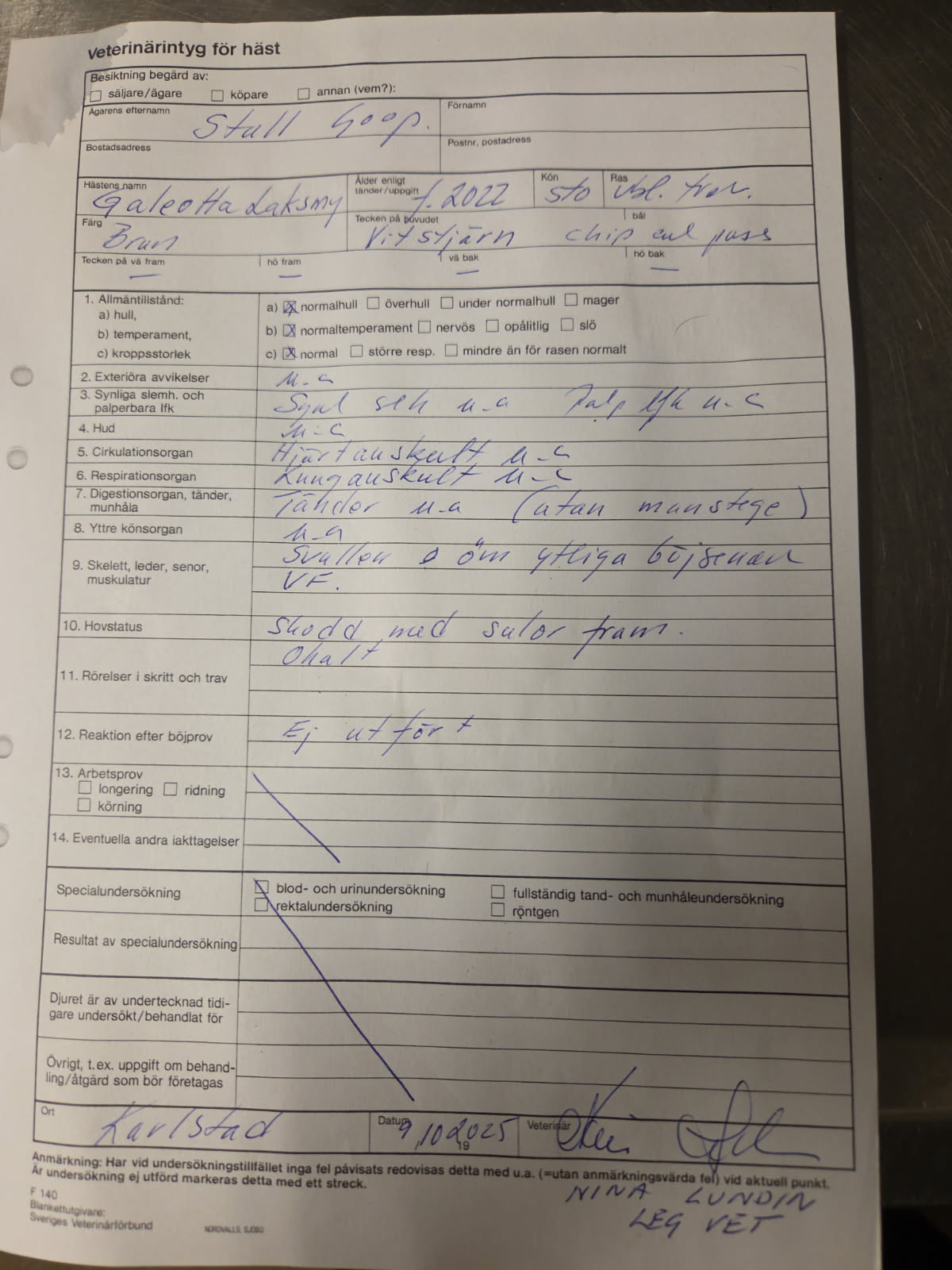 Galeotta Laksmy* (IT) säljs om, då tidigare köpare ej fullföljde sina åtaganden. Notera att veterinärintyget därför är från 9/10.
