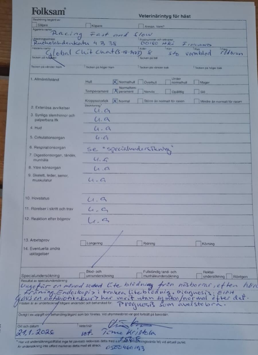 Finska: Hieno 8-vuotias tamma myydään siitokseen. Ennätys 11,1a ja volttiennätys 12,6 täydeltä matkalta juostu Vermossa.