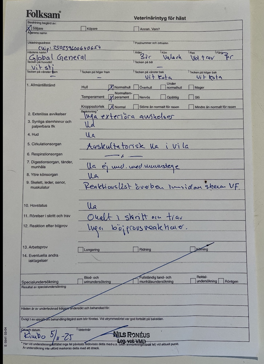 Global General är en treårig valack efter Ready Cash-sonen Charly du Noyer, far till fyra svenskfödda miljonärer. Mamma Very Many Legs tjänade 476.400 SEK och mödernet har producerat ett flertal miljonärer.