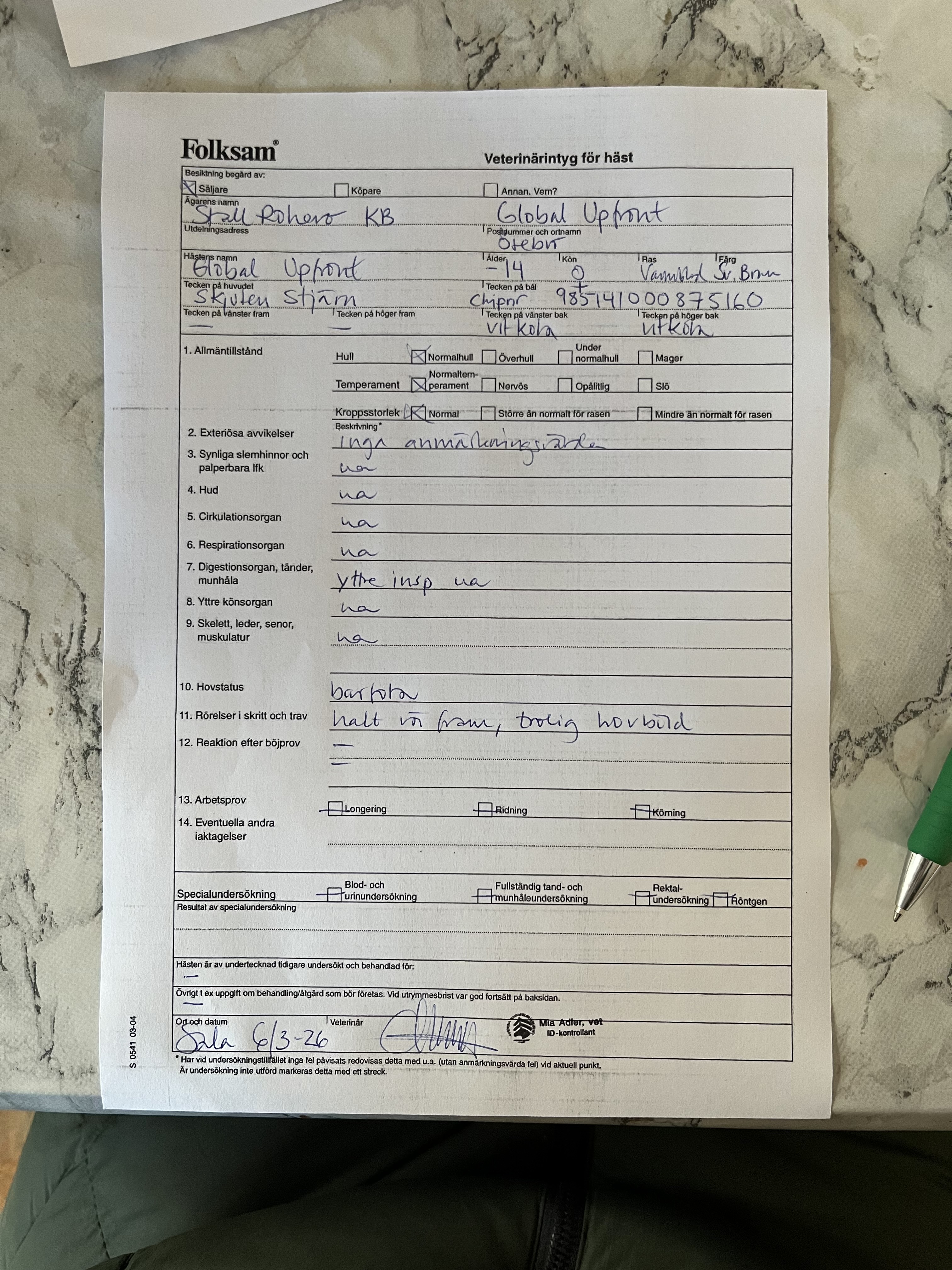 Global Upfront är ej dräktig. Upphämtas från Sala efter försäljning.