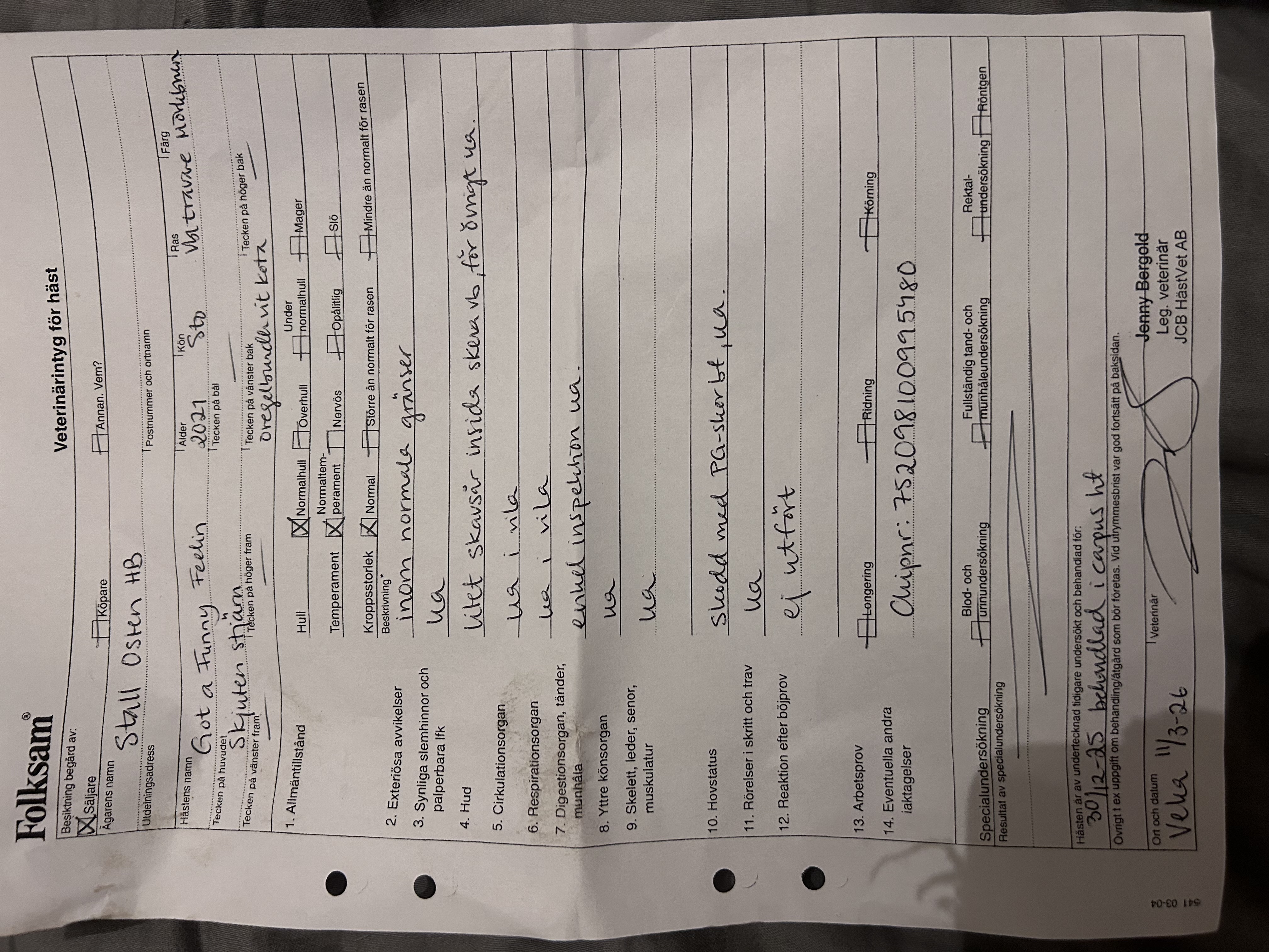 Got a Funny Feelin är ett femårigt sto som säljs som fölsto. Hon är ej dräktig.