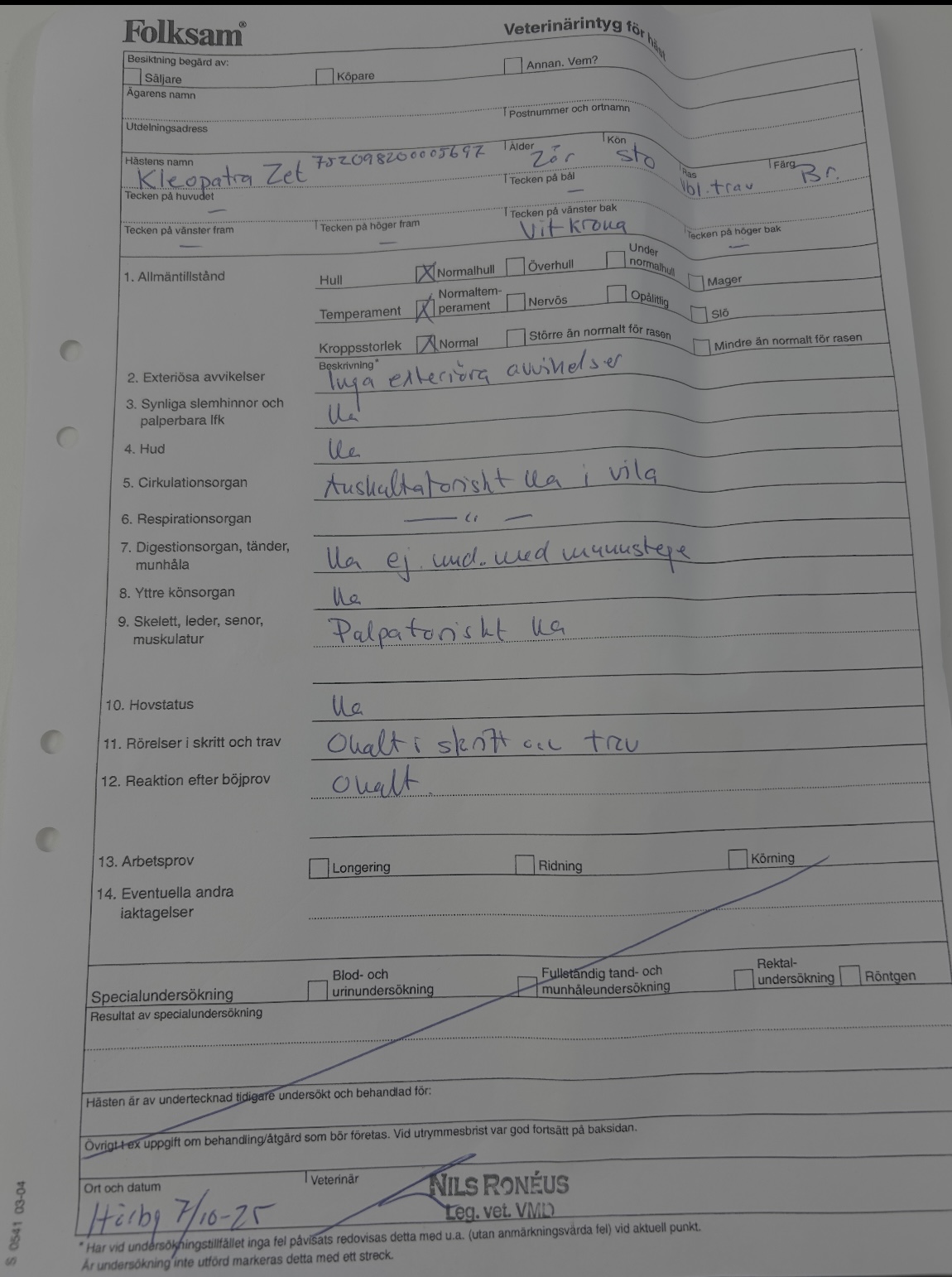 Daniel Redén: "Kleopatra Zet är en tjej med lite speciellt humör, fin travare som ligger som övriga 2-åringar i gruppen. Hon kan vara speciell, kan tveka lite när man begär det lilla extra. Mest en mognadsfråga. I övrigt snäll”
