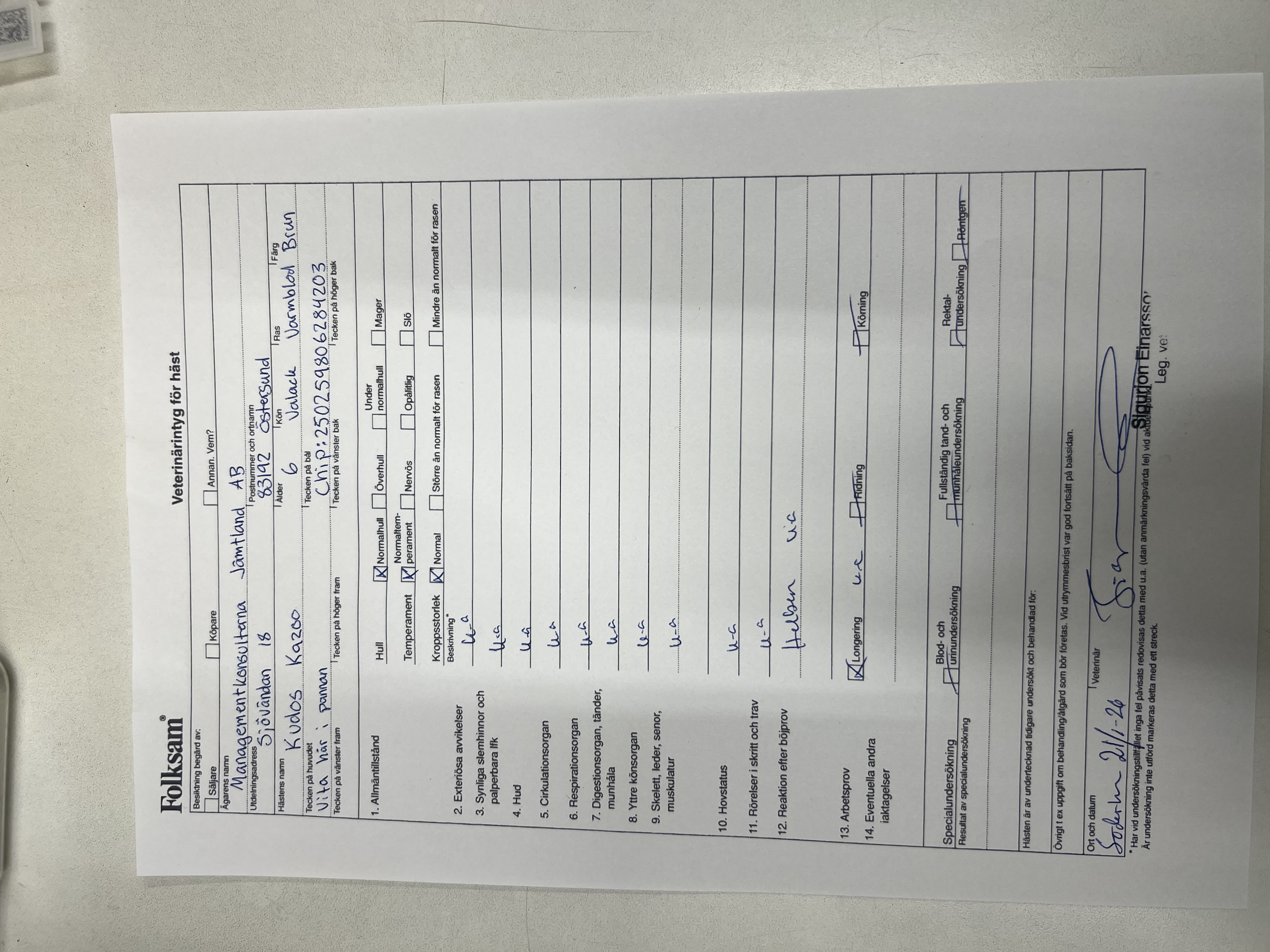 Thomas Lönn: ”Kudos Kazoo har alltid besuttit bra fartresurser men har till och från haft kämpigt med travet. Vi har tyvärr ej heller lyckats hitta rätt nycklar åt honom. Han är snäll och trevlig i körning och hantering och går med andra i hagen. Den som hittar rätt med honom får en bra häst.”
