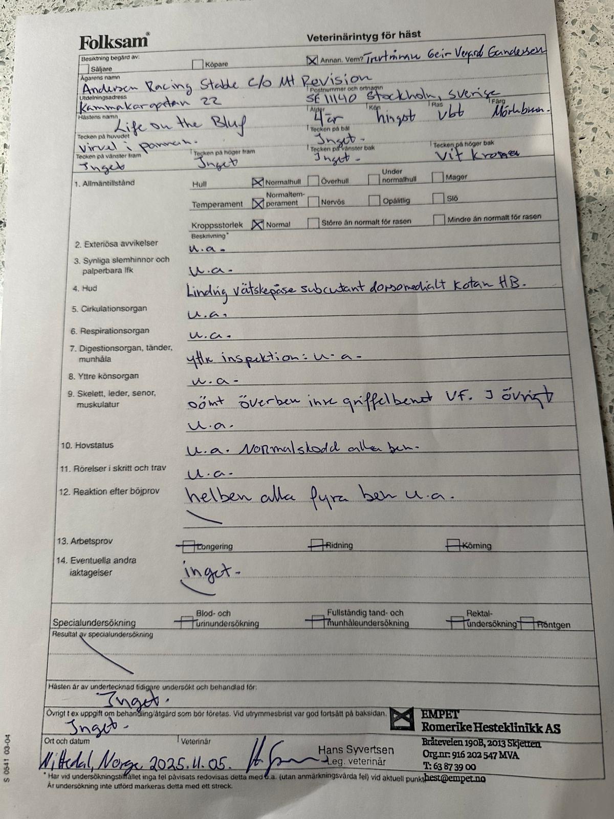 Magnus Teien Gundersen: “Life On The Bluff är en otroligt snabb häst med fantastisk utstrålning. Han visade sin fina kapacitet när han blev trea i årets Fyraåringseliten under Elitloppshelgen på 1.09,6."