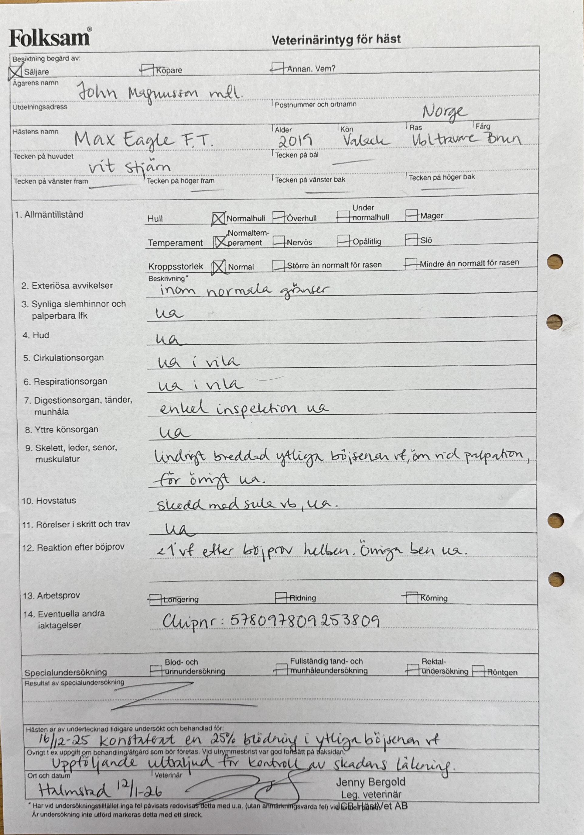Gustav Johansson: Max Eagle F.T. är en trevlig häst i hantering och körning. Planen var att starta på med honom i vinter men inför en tilltänkt start ådrog han sig en skada, kolla veterinärintyg.”