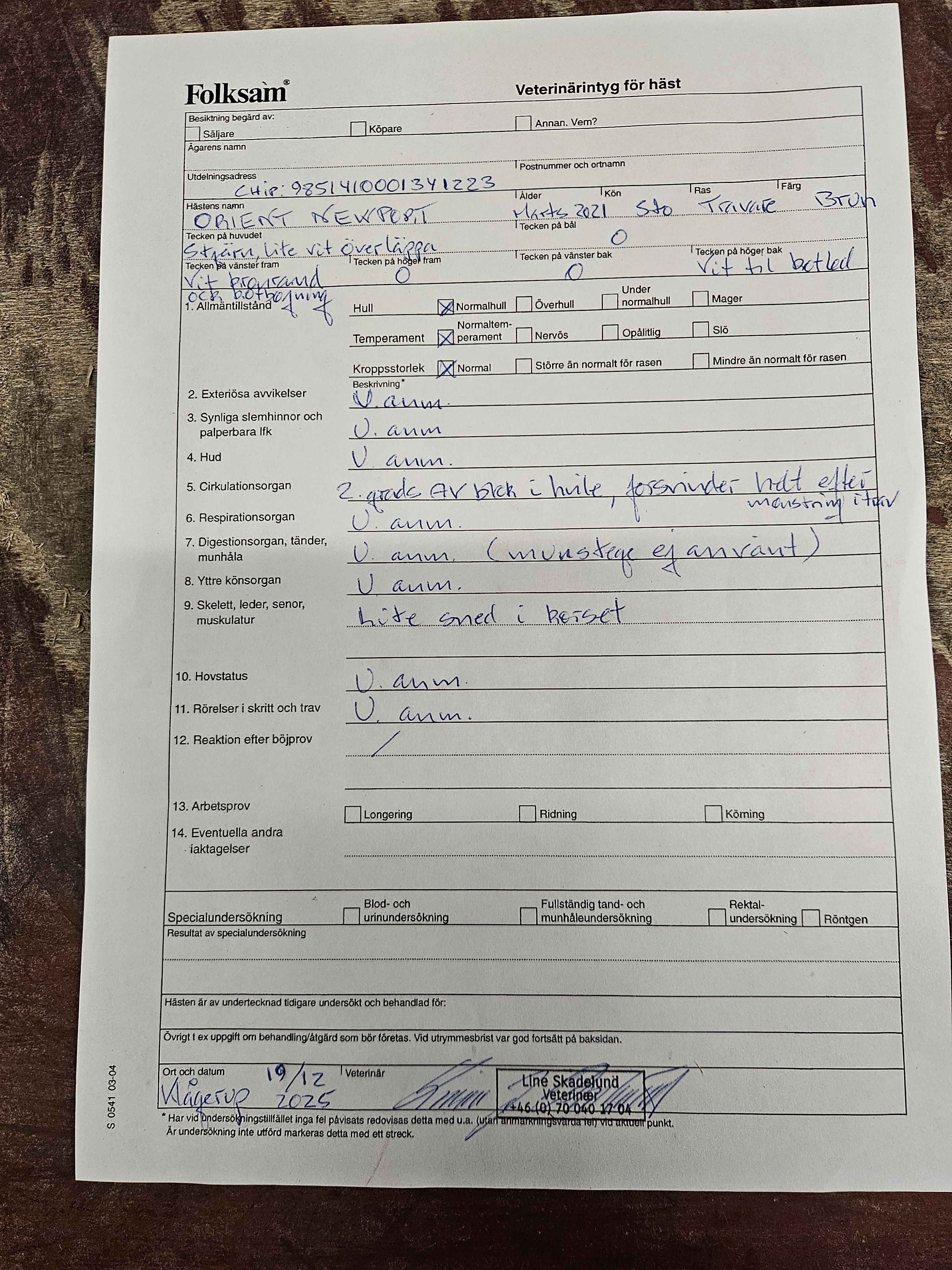 Orient Newport är efter Uncle Peter, som har relativt få avkommor i Skandinavien – mest meriterad är Super Schissel med 3 565 858 SEK intjänat och rekord 1.09,1. Modern Sand Violent Blu travade också på 1.10-talet och tjänade 2 736 907 SEK.