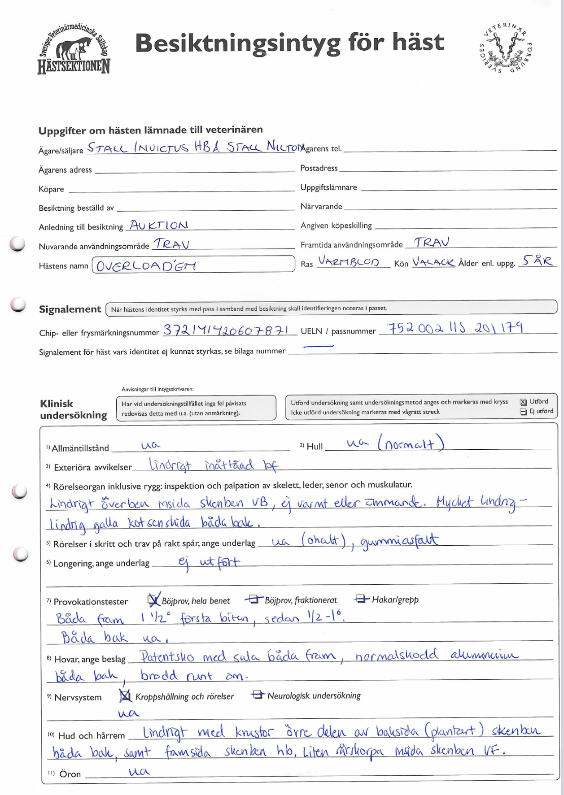 Som ettåring gick Overload’em under klubban på Solvalla Yearling Sale 2021 till priset av 320.000 kronor.