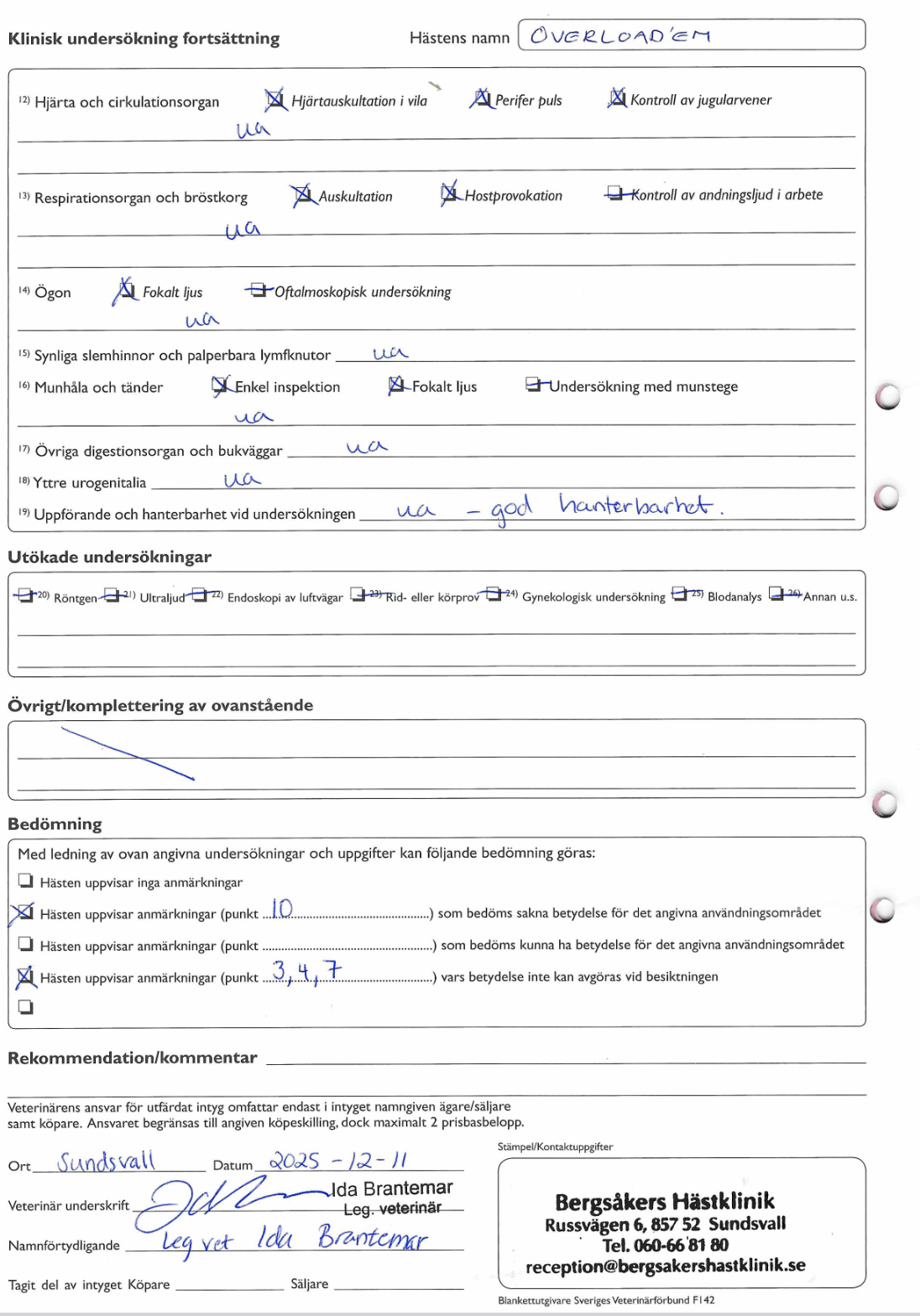 Robert Dunder: "Overload’em är en högkapabel herre som har alldeles för lite pengar på sig för sin kapacitet. Han började tävlingskarriären lysande med ett första och andrapris, därefter fick han en spricka i ett framknä och var sedan tillbaka på tävlingsbanan under våren 2024. Han startar på V85, Östersund på lördag och han säljs därför med fin form."