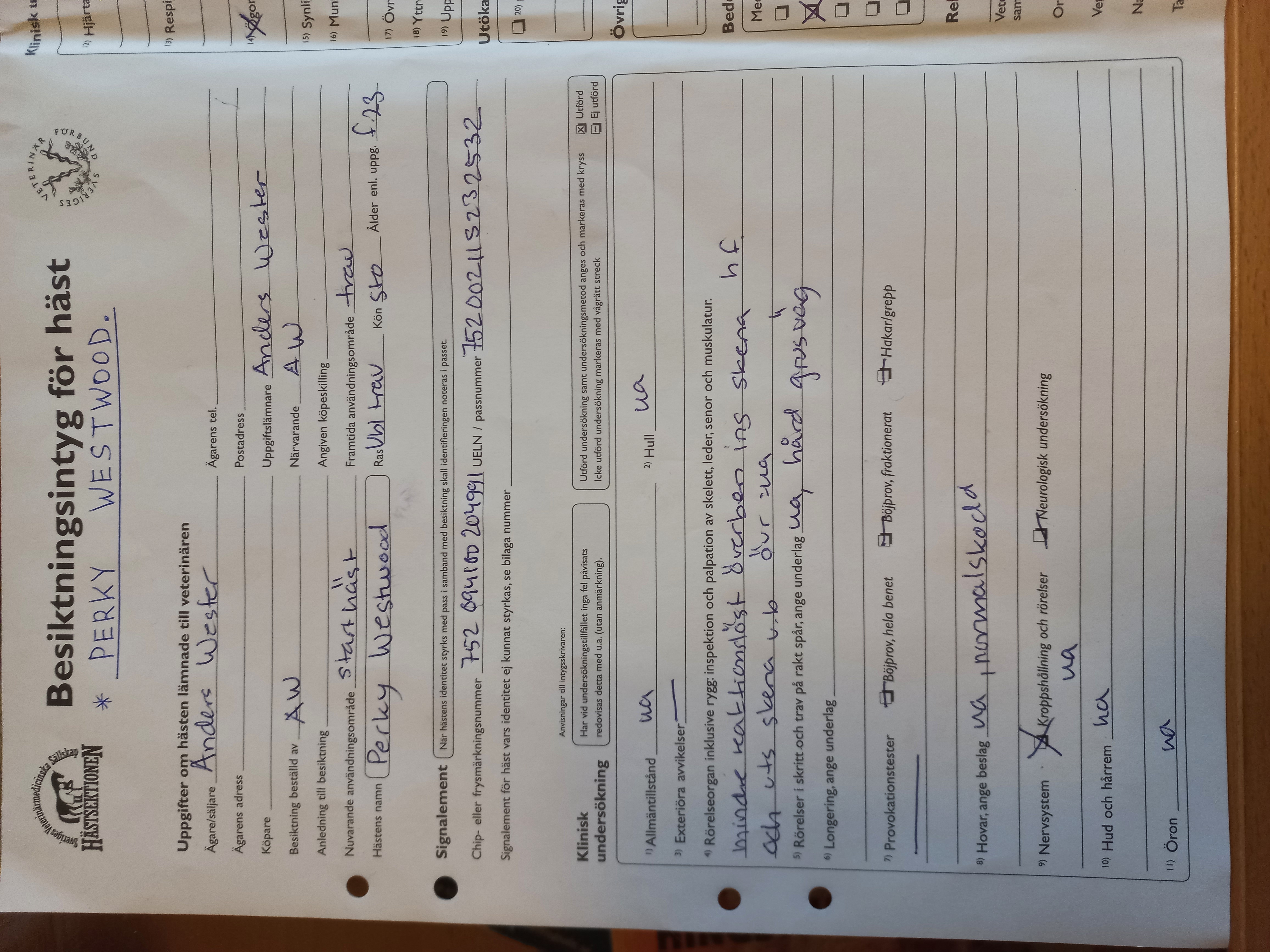 - Perky Westwood har aldrig behandlats för nån skador, aldrig visat ömhet /stelhet efter varken hårda jobb, eller efter lopp.