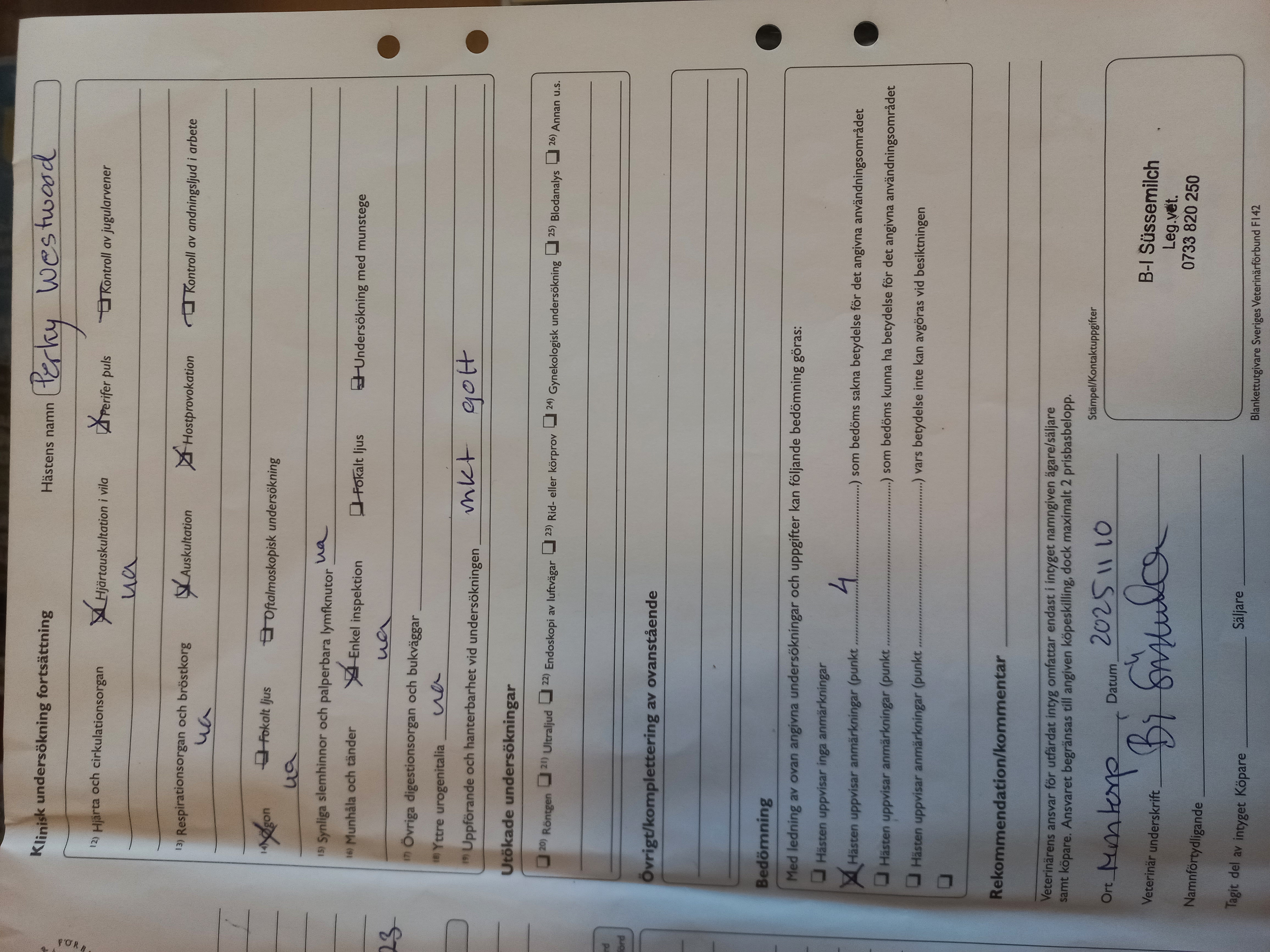 *Perky får ej tillföras anabola steroider eller andra hormonpreparat, ej dopning, då upphör leasingavtalet direkt.