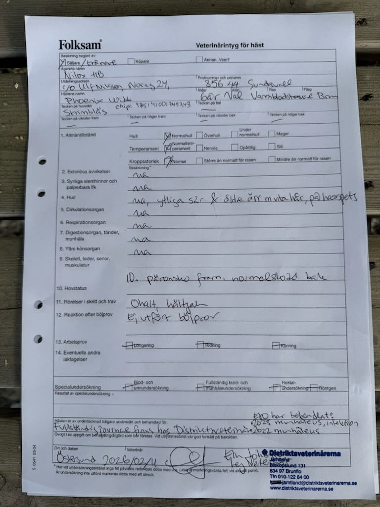 Phoenix Wibb är exteriört mycket fin och rättställd och är stark och rejäl med bra storlek. Han är fin att köra i träning men kan vara lite ambitiös ibland. Hästen tävlar bra både med och utan skor. Känslan är att han springer lite med handbromsen i och skall kunna släppa till lite mer. Vann V86 på Bergsåker trots tredjespår sista varvet under 2024.