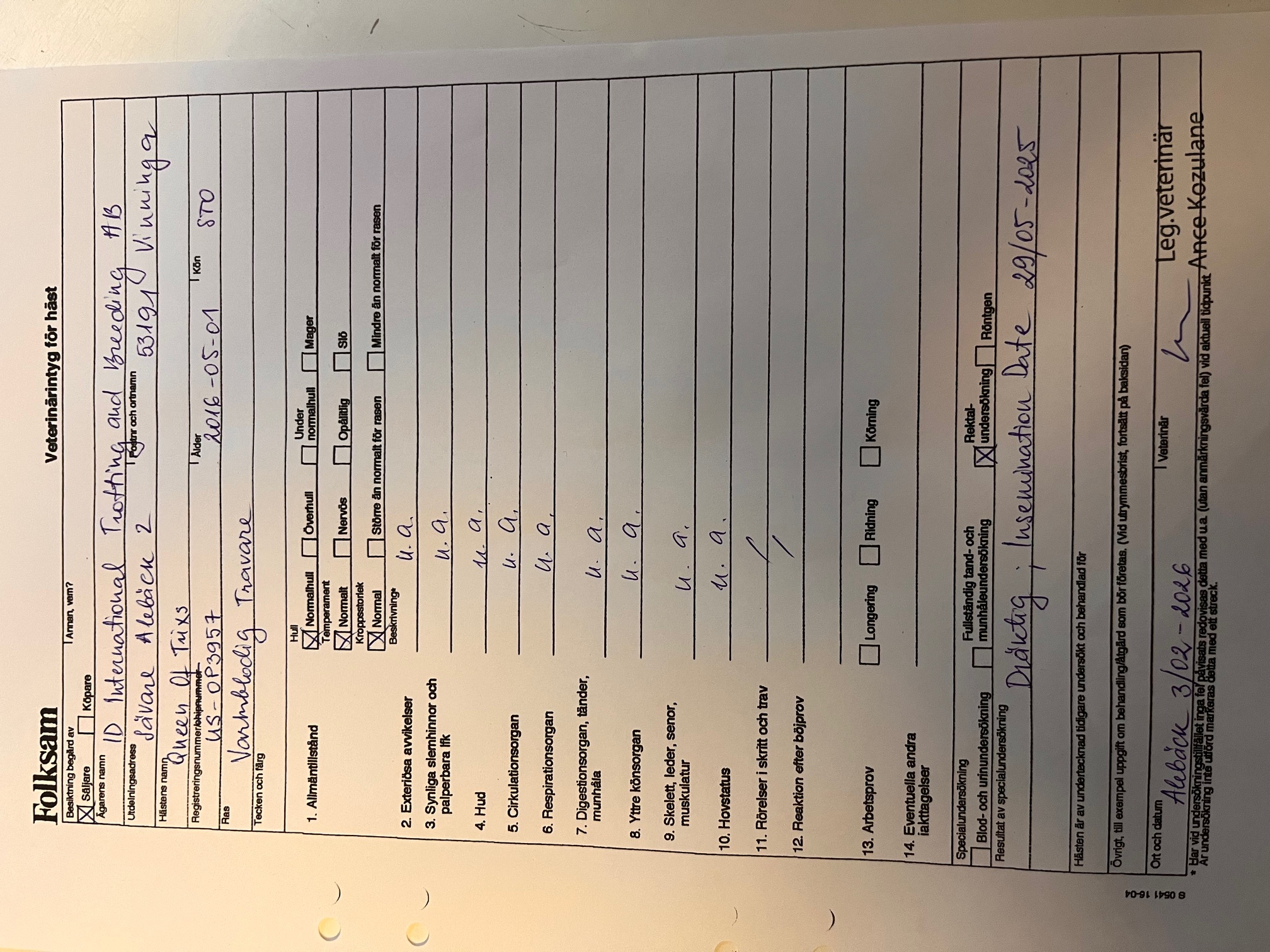 Queen of Trixs är dräktig med Ecurie D. och har ett beräknat földatum på 29 juni 2026. Levande föl-avgiften på $7.500 dollar betalas av köparen.