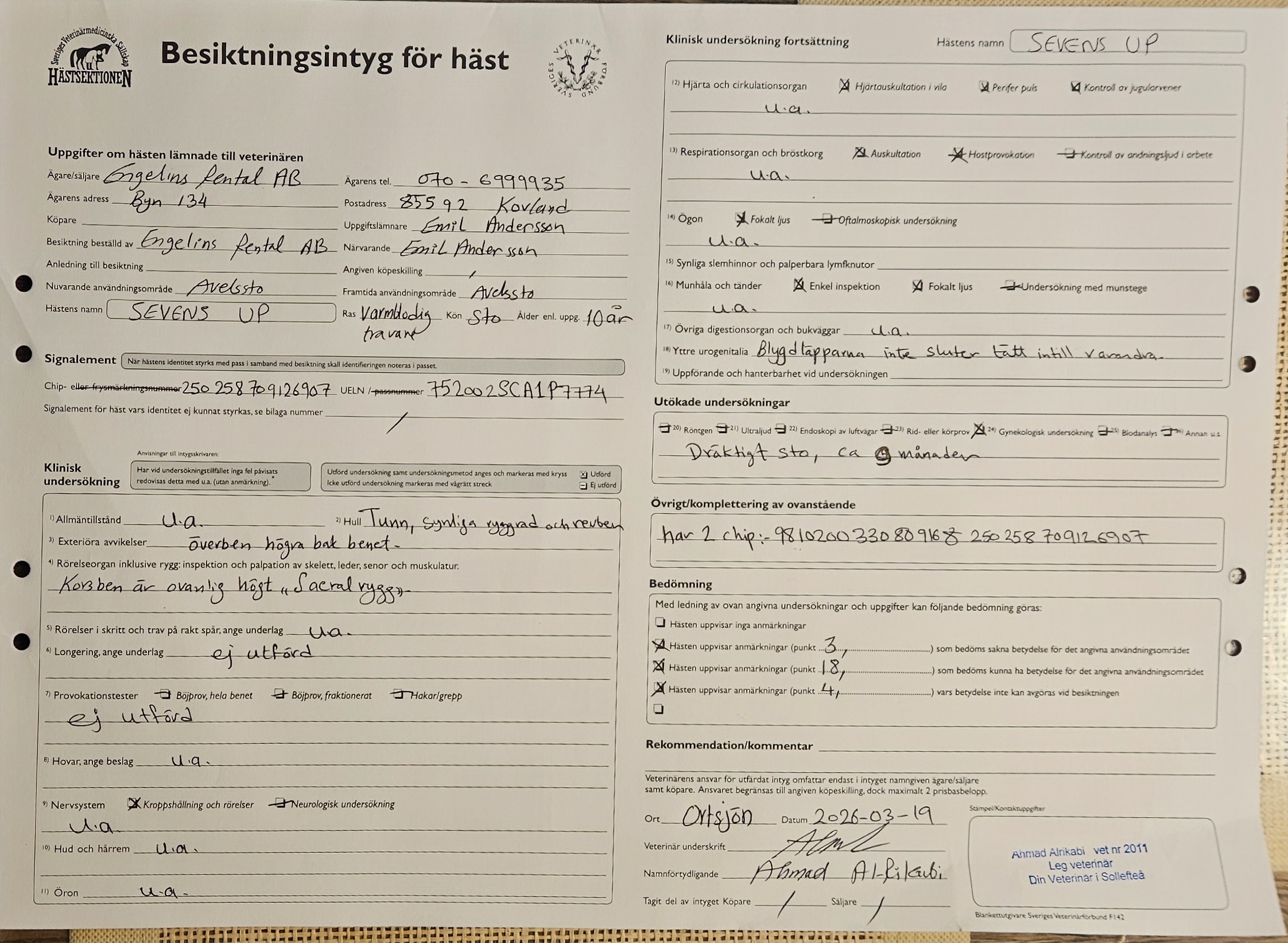 Sevens Up är dräktig med Calgary Games, hon beräknas föla i slutet av maj. Levande föl-avgiften på 75.000 SEK + moms betalas av köparen.