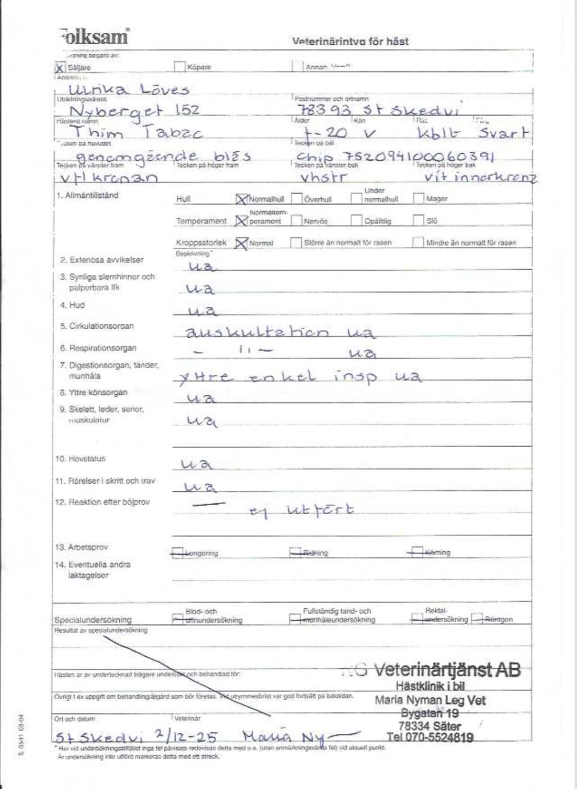 Per Nordlund: "Thim Tabac är en kapabel herre, dock ingen nybörjarhäst då han kan bli vass emellanåt. Han trivs inte inne på box utan mår bäst av att vistas på lösdrift med andra hästar."