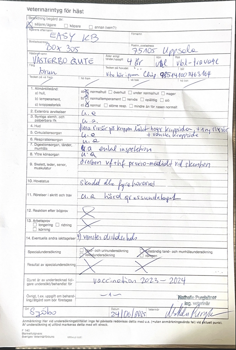 Per Nordström: "Västerbo Gute började karriären riktigt lovande (var bl a finalist i Svensk Uppfödningslöpning, sjuk i finalen) och även om han redan då tävlade väldigt bra kände jag att det fanns mer utveckling i honom. Dessvärre har han inte motsvarat våra höga förväntningar i år och ett miljöombyte och ett par nya fräscha ögon att se på det kan vara nyckeln. Gute är väldigt snäll i både träning och hantering."