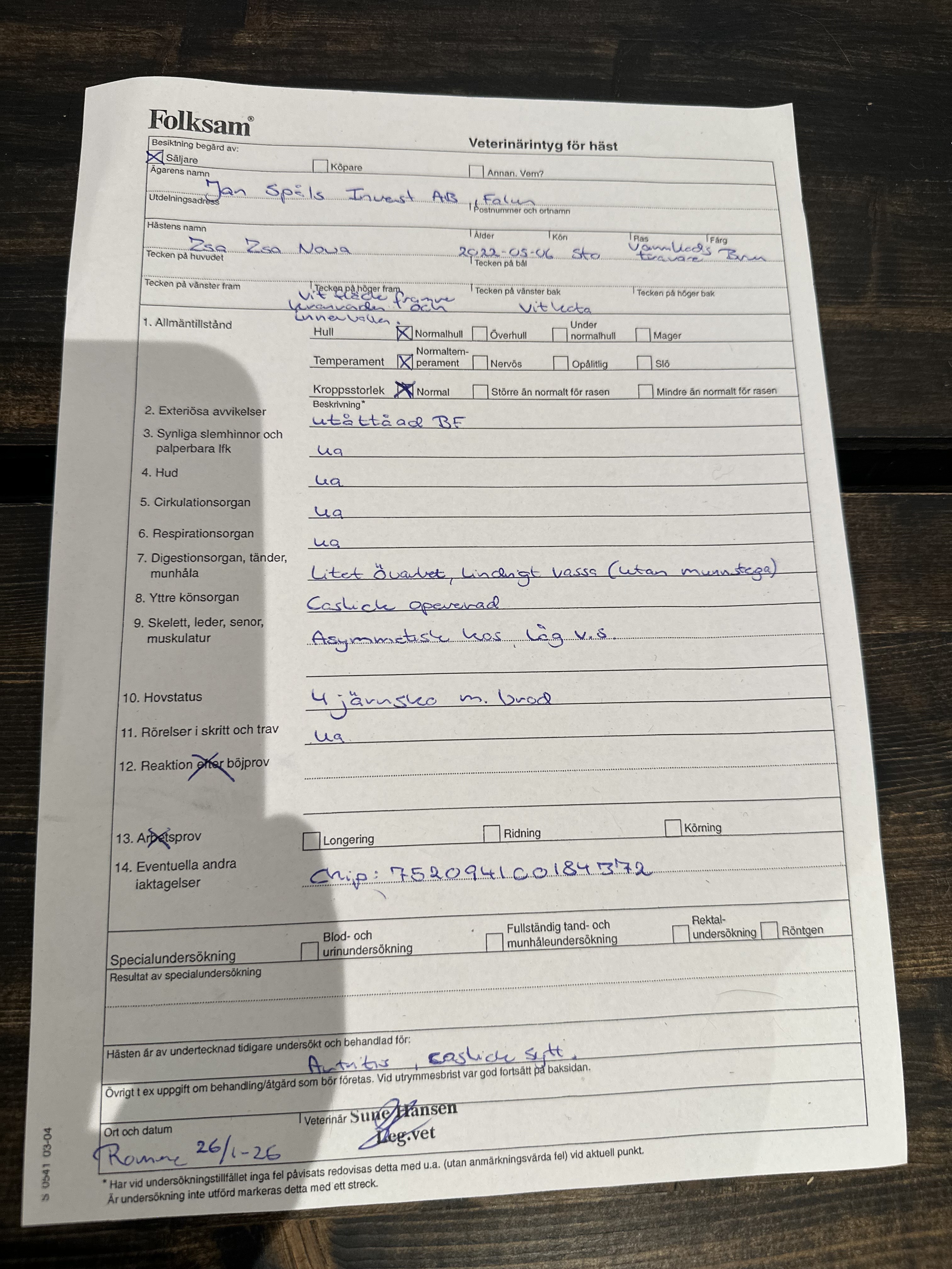 Zsa Zsa Nova har tidigare haft problem att "sätta" travet men i de senaste starterna har det fungerat bra. Hon blev lite stressad och "framåt" i senaste starten och skulle nog mått bättre hemma i stallet. Hon är lätt att hantera, snäll och lagom livlig.